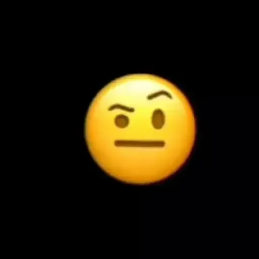 Rosto de emoji amarelo com expressão de desconfiança ou desaprovação, sobrancelhas franzidas e boca reta.