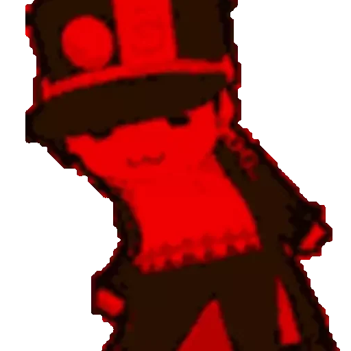 Personagem de anime com cabelo vermelho e chapéu preto com um círculo vermelho.