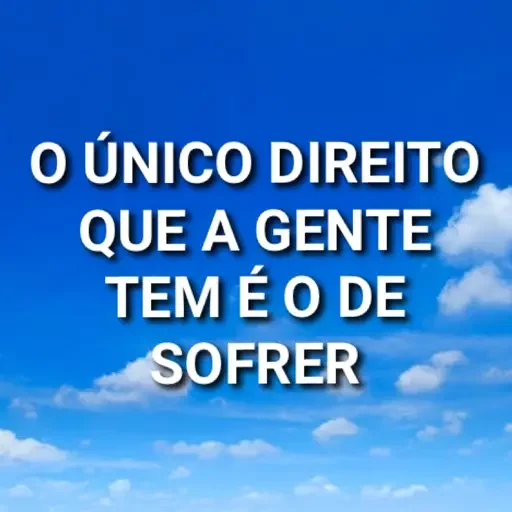 Um céu azul com nuvens brancas e a frase "O ÚNICO DIREITO QUE A GENTE TEM É O DE SOFRER" em letras brancas.