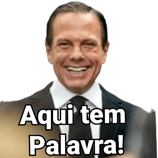 Homem de terno e gravata sorrindo com o texto "Aqui tem Palavra!" sobreposto.