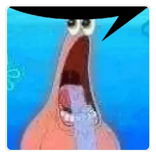 Patrick Star com expressão confusa ou surpresa, olhos arregalados e sobrancelhas levantadas, fundo azul com bolhas.