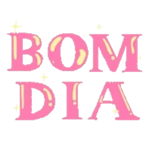 Um sticker com o texto 'BOM DIA' em letras grandes e rosadas, com detalhes em dourado e pequenos pontos brilhantes ao redor.