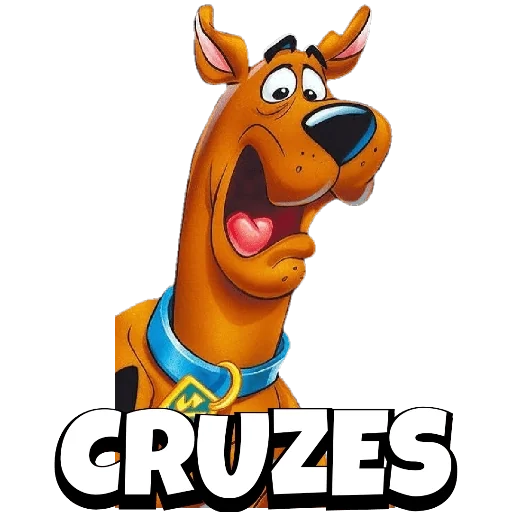 O cachorro Scooby-Doo com a boca aberta e a palavra 'CRUZES' em letras grandes abaixo dele.