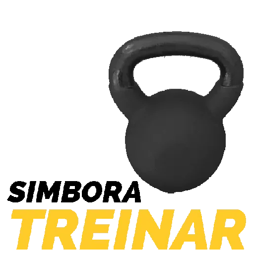 Uma haltere de ginástica com o texto 'SIMBORA TREINAR' em preto e amarelo.