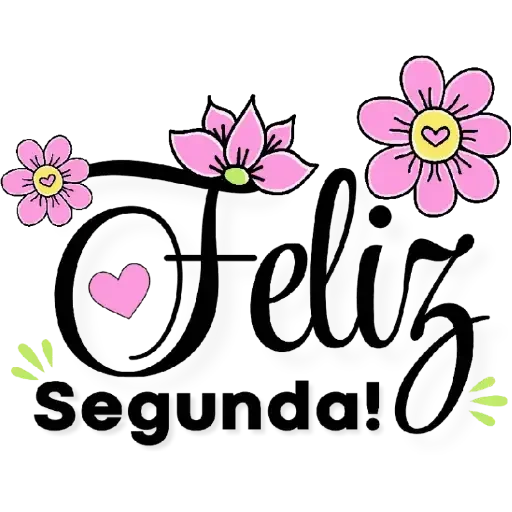 Um desenho com flores cor-de-rosa e a frase 'Feliz Segunda!' em letras grandes e decorativas. As flores têm centros amarelos e um coração rosa dentro da letra 'F'.