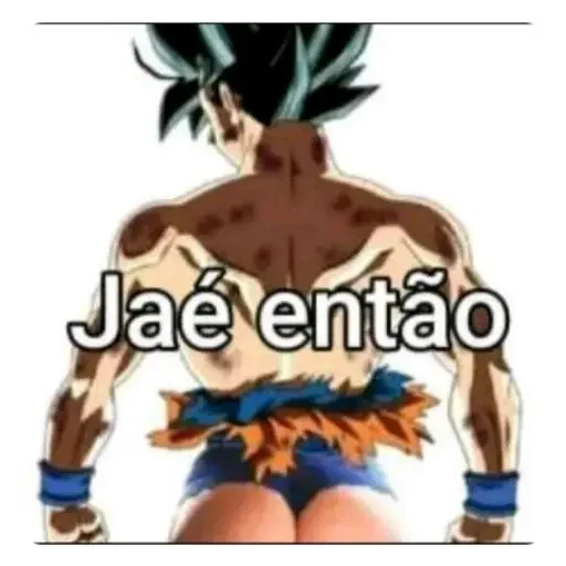 Um personagem de anime com cabelo preto e musculatura definida, vestindo uma faixa azul e laranja, com o texto 'Jaé então' sobreposto.