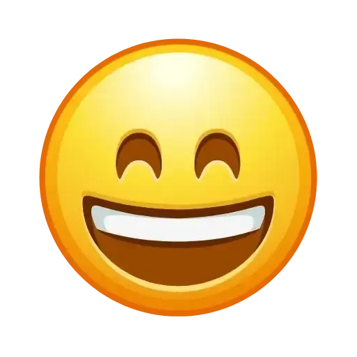 Um emoji de rosto amarelo com um sorriso largo e olhos fechados, mostrando alegria.