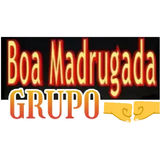 Um retângulo preto com texto 'Boa Madrugada GRUPO' em letras amarelas com efeito de fogo. Duas mãos douradas ao lado.