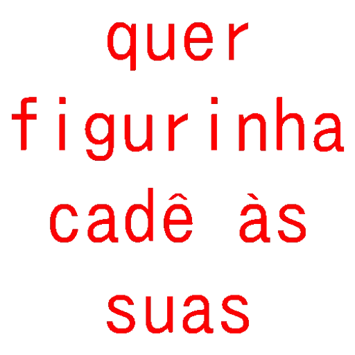 Um texto em vermelho que diz 'quer figurinha cadê às suas'