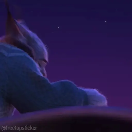 Uma pessoa com cabelos claros e óculos, deitada de lado, contra um fundo roxo escuro com estrelas.
