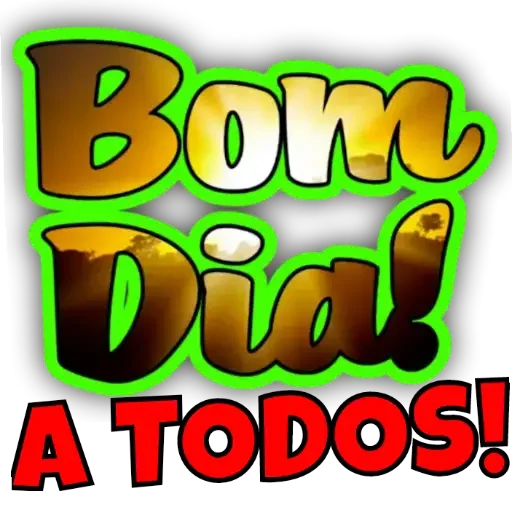 Um sticker colorido com o texto 'Bom Dia! A TODOS!' em letras grandes e decorativas. As palavras 'Bom Dia!' estão em um degradê de cores marrons e amarelos com contorno verde, enquanto 'A TODOS!' está em vermelho.