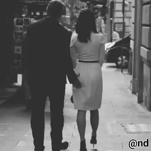 Casal caminhando de costas em uma rua, o homem de terno e a mulher de vestido branco.