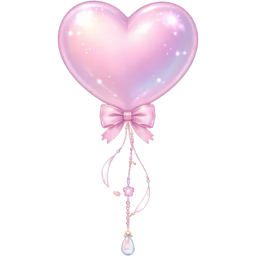 Um balão em forma de coração rosa com reflexos de luz e um laço rosa na parte inferior, com uma pequena gota brilhante pendurada.