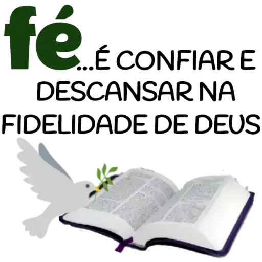 Uma pomba branca voando sobre um livro aberto com uma oliveira no bico, com o texto 'fé... É CONFIAR E DESCANSAR NA FIDELIDADE DE DEUS'.