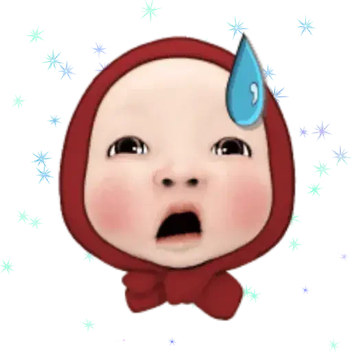 Rosto de bebê surpreso com uma gota de suor na testa e estrelas ao redor.
