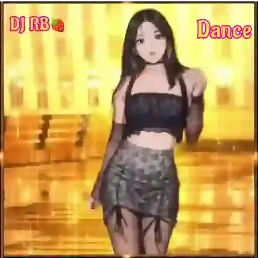 Uma mulher jovem com cabelo preto e um look de dança, vestindo um top preto e uma saia cinza, com o texto 'Dj RB a Dance' no canto.