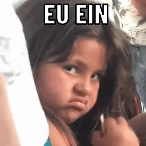 Menina com expressão confusa ou surpresa, olhando para o lado com a frase 'EU EIN' em cima.