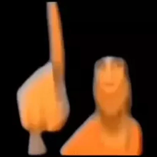 Mão com dedo indicador levantado ao lado de uma mulher com expressão facial neutra.