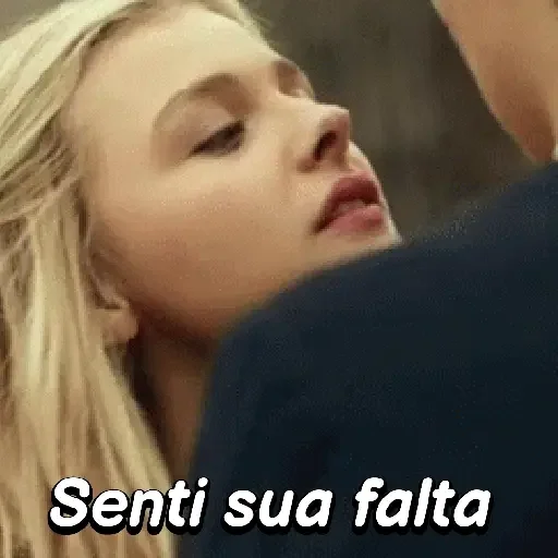 Uma mulher loira com os olhos fechados e uma expressão de desejo, com a frase 'Senti sua falta' sobreposta.