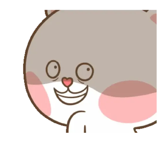 Rosto de um gato cartoon com bochechas rosadas e coração no focinho, parecendo feliz.