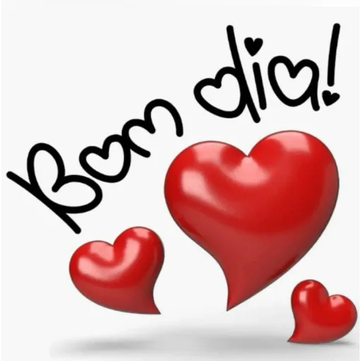 Três corações vermelhos de diferentes tamanhos, sendo um grande no centro e dois menores ao lado, com o texto 'Bom dia!' escrito em preto com estilo manuscrito.