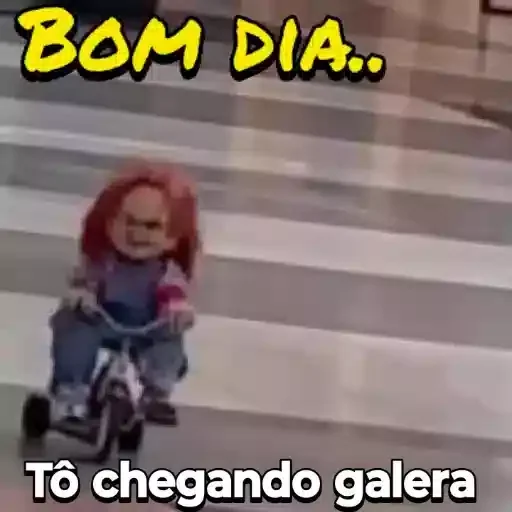 Uma boneca com cabelo vermelho em uma bicicleta, com o texto 'BOM DIA.. Tô chegando galera'