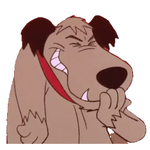 Um cão cartoon com expressão engraçada, língua para fora e olhos semicerrados, com o texto 'Hihihihihi!' em amarelo.