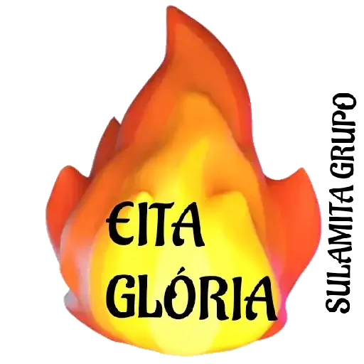 Chama de fogo laranja e amarela com as palavras 'EITA GLÓRIA' escritas em preto no centro.