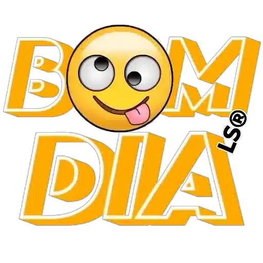 Um emoji amarelo com a língua para fora e olhos grandes sorrindo, sobreposto às palavras 'BOM DIA' em letras grandes e amarelas.