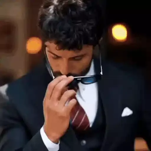 Homem de terno e gravata vermelha ajustando óculos, com expressão séria e concentrada.