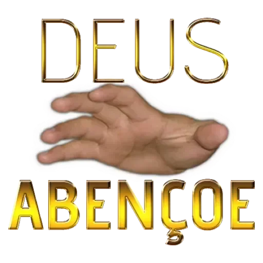 Mão aberta com a palma para cima e os dedos levemente curvados, com o texto 'DEUS ABENÇOE' em letras grandes e douradas acima e abaixo da mão.