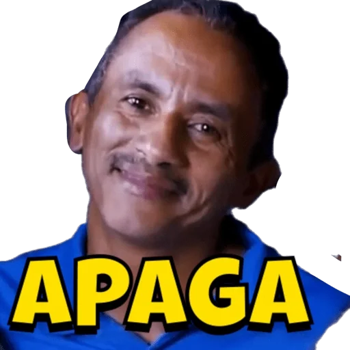 Um homem mais velho com cabelo preto curto e uma camisa azul olhando para a frente com uma expressão facial séria. A palavra 'APAGA' está escrita em letras grandes e amarelas na parte inferior da imagem.