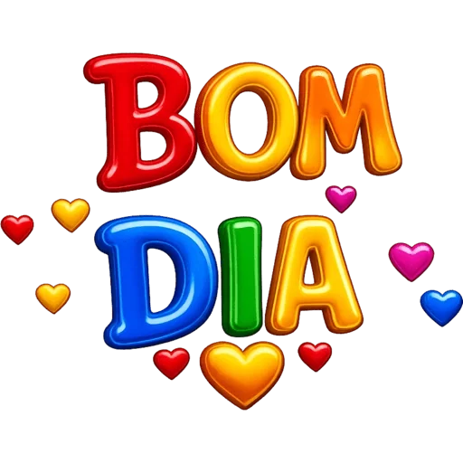 Um 'Bom Dia' colorido com letras grandes e corações ao redor.