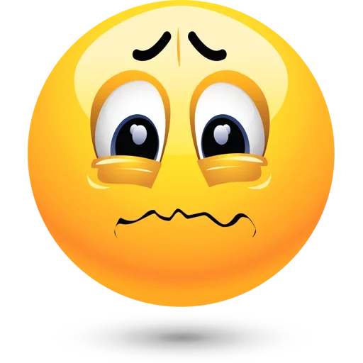 Rosto de emoji amarelo com expressão de preocupação ou confusão, olhos arregalados e sobrancelhas franzidas.