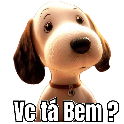 Um cachorro de pelagem castanha e branca com um colar, fazendo uma expressão curiosa. Abaixo dele, está escrito 'Vc tá Bem ?'