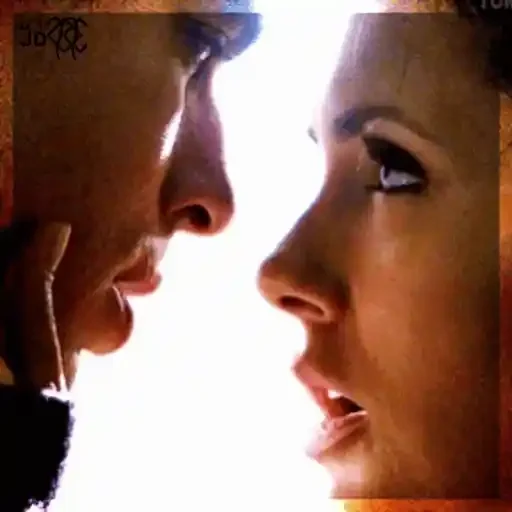 Rosto de um casal, lado a lado, com expressão de intimidade e proximidade. O fundo é claro e brilhante.
