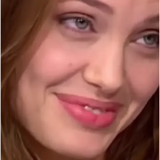 Rosto de uma mulher com cabelos castanhos e olhos azuis, sorrindo levemente com batom rosa.