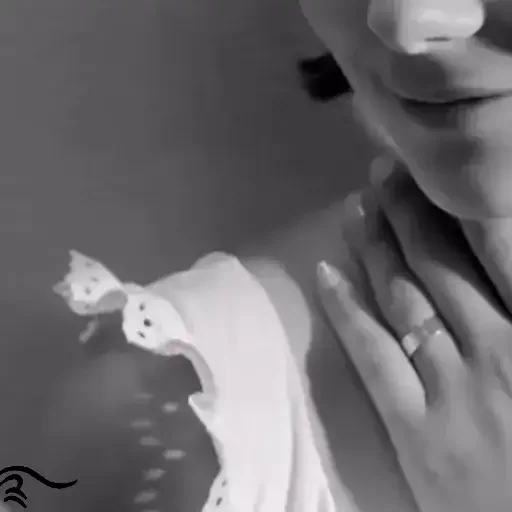 Uma mulher com a mão no pescoço, parecendo surpresa ou chocada, em uma imagem preto e branco.