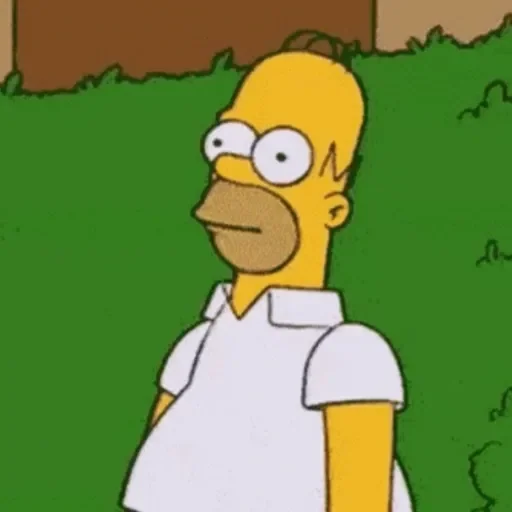 Homer Simpson, do desenho Os Simpsons, olhando para o lado com uma expressão neutra, vestindo uma camisa branca e com o fundo de grama.