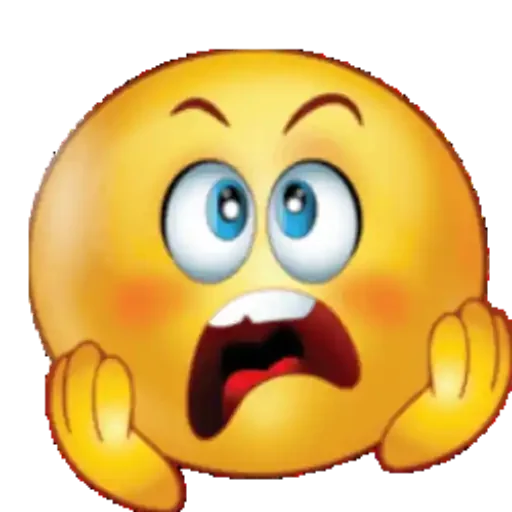 Um emoji amarelo com expressão de surpresa e choque, mãos na face e boca aberta.