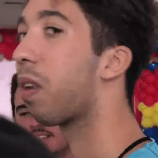Rosto de um homem com expressão surpresa ou chocada, com outro homem ao fundo. Ele parece estar olhando para algo com surpresa.