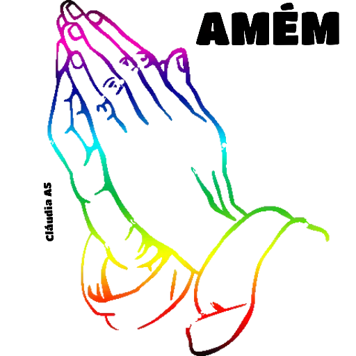 Mãos unidas em oração com as palavras 'AMÊM' e uma linha colorida que as contorna, com o nome 'Charles A.' ao lado.