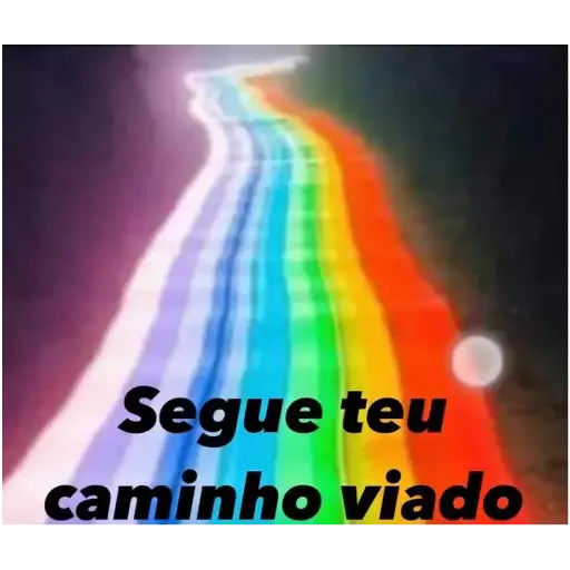 Um caminho colorido com efeito de luzes, com o texto 'Segue teu caminho viado' em preto.