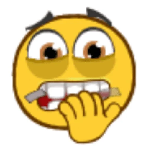 Rosto de emoji amarelo com expressão de dor ou nojo, mordendo um cigarro com sangue na boca.