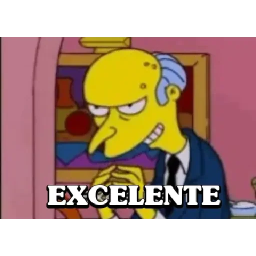 Personagem de desenho animado com expressão facial cética, usando terno e gravata, com a palavra 'EXCELENTE' em destaque.