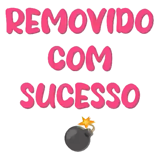 Uma bomba cinza com uma estrela laranja acesa em seu pavio, abaixo do texto 'REMOVIDO COM SUCESSO' em letras grandes e rosadas.