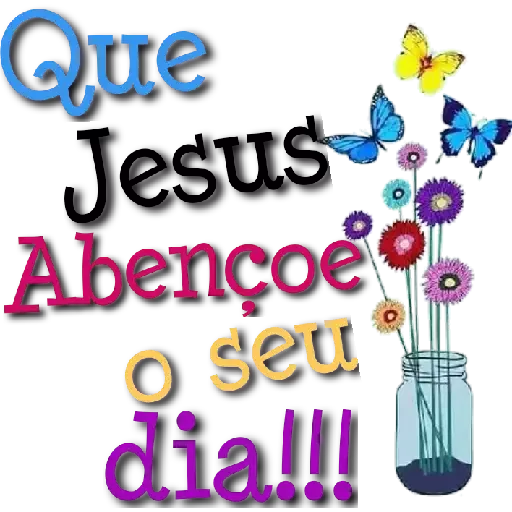 Um vaso com flores coloridas e borboletas, com o texto 'Que Jesus Abençoe o seu dia!!!'