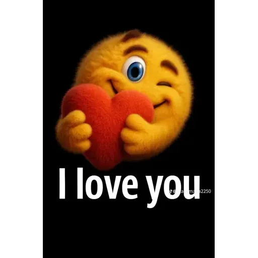 Um emoji amarelo com olhos grandes e uma expressão de amor, segurando dois corações vermelhos, com o texto 'I love you' abaixo.