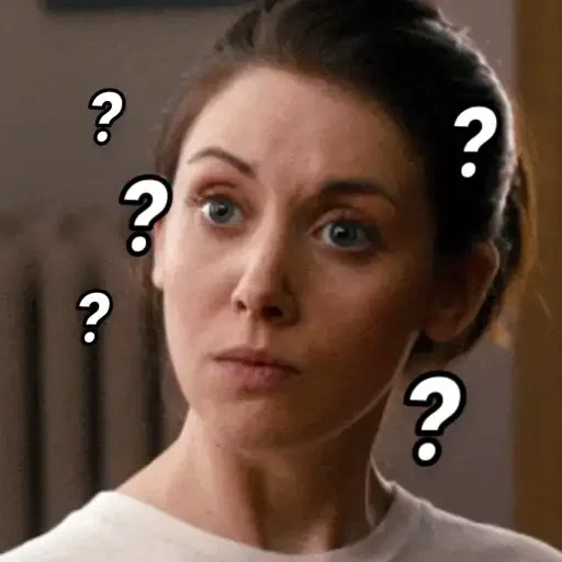 Uma mulher com expressão confusa e várias marcas de interrogação ao redor de sua cabeça.