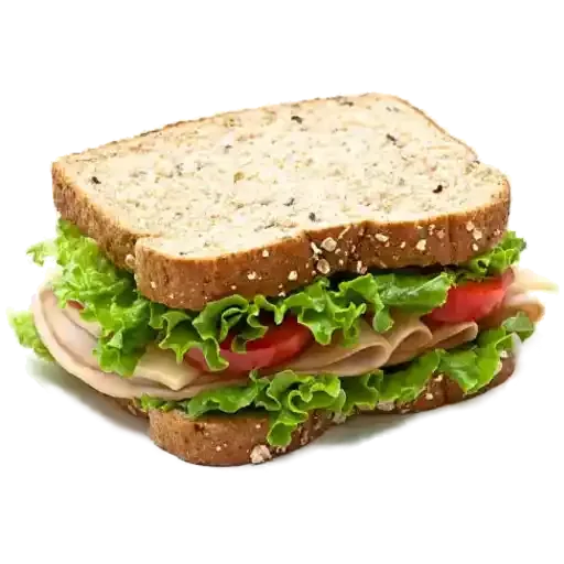 Um sanduíche de pão integral com alface, tomate e presunto